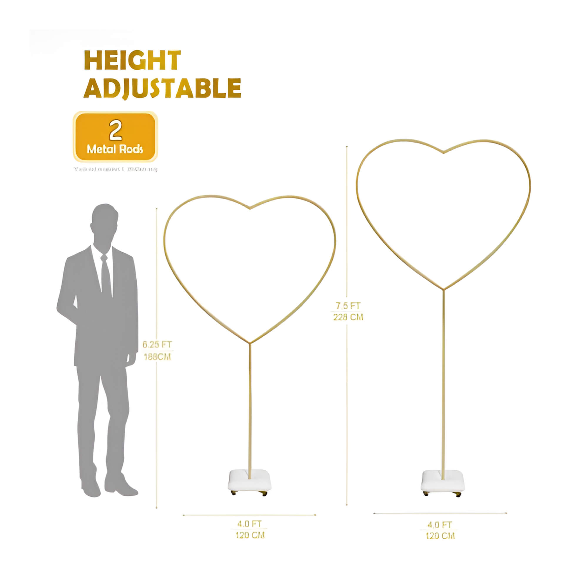 • Design: Metal heart shape with adjustable height column